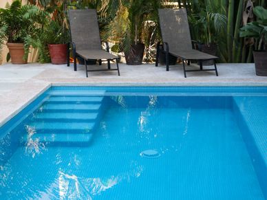 Con alberca compartida, Suites Culturales en planta baja para 2 personas cada una con cama king y dos suites con dos camas matrimoniales para 2-4 personas en planta alta a media cuadra de la playa (80 mts)