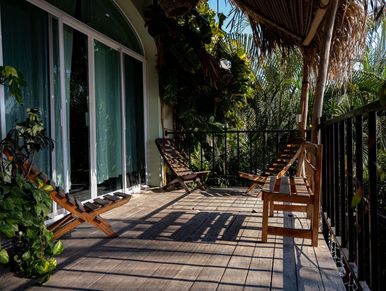 En el tercer piso hay una gran terraza con palapa donde podrás disfrutar libremente de la mejor vista a la playa de Chacala.